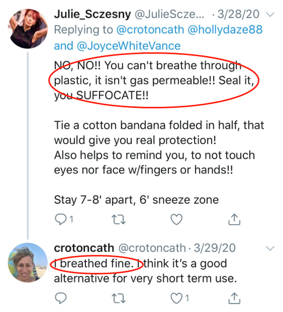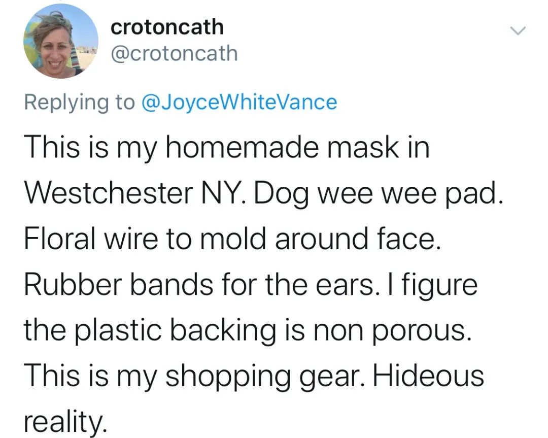 (来自小编的默默吐槽:这个post真是看得我心惊胆战,显然这位完全没有理解为什么戴口罩可以保护自己和他人。这粗线针织口罩的“漏洞”们,大到可以让飞沫自由进出...希望这位姐姐编织的时候有添加过滤层进去)