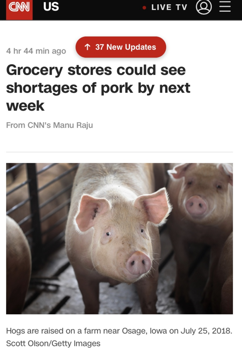 今天CNN放出了一条消息,说超市和杂货店可能会在下周出现猪肉短缺,这让我等肉食爱好者不由心下一惊。