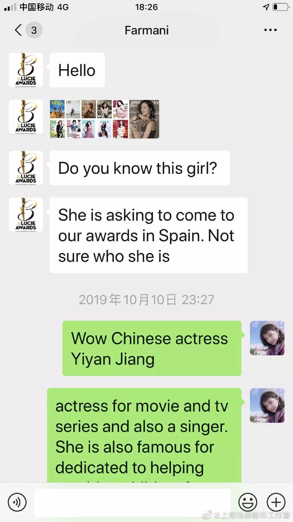 “你知道这女生是谁吗?她想来我们的在西班牙的颁奖礼,但是我不知道她是谁。”