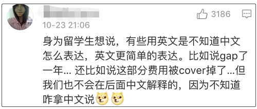 本来,中英夹杂这一点并不是黑点,留学生应该深有体会,有时候一些词汇比如gap、cover确实不知道拿中文咋说。