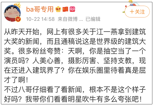 微博博主@ba哥专用为此发了一条很长很长的微博,来证实江一燕的这个奖项水分不少。