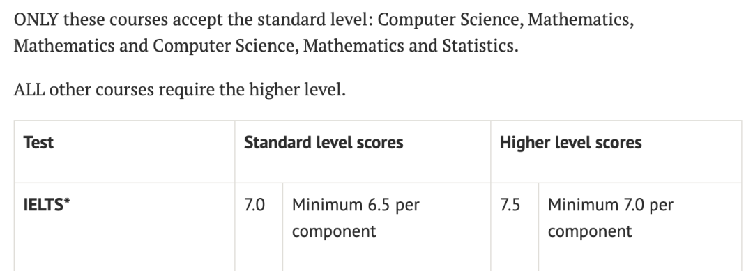 但在牛津大学最新公开的2019年最新入学标准中,将数学,生物医学和计算机科学等专业降低至standard level,雅思成绩要求从7.5分降低为7.0分,单项从7.0降到了6.5。