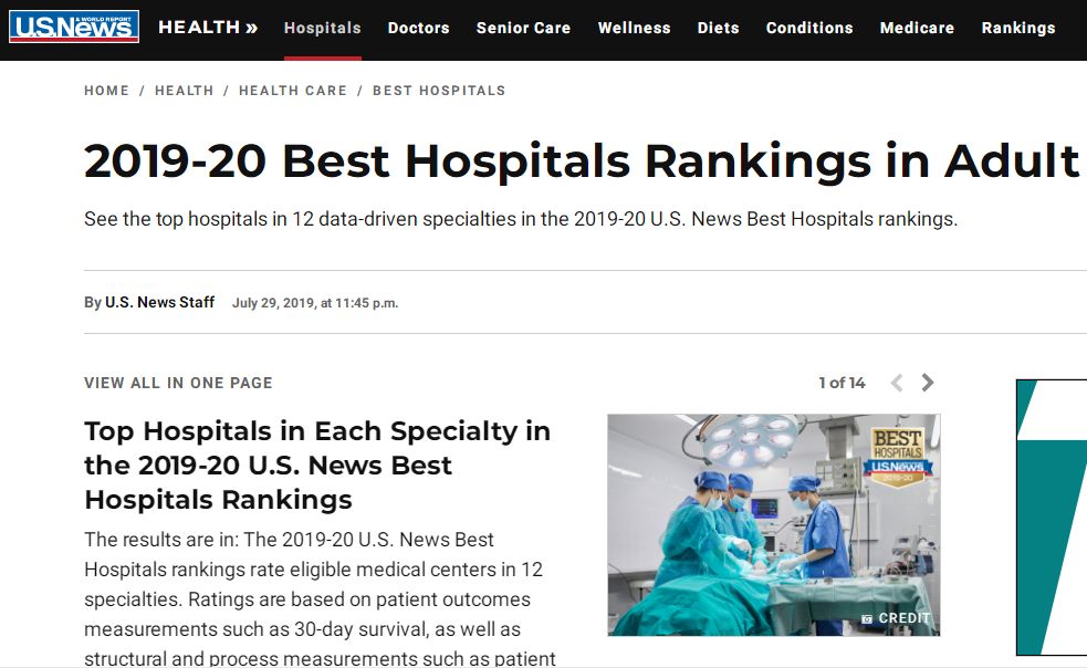 美国各种医院排名不少,但影响力大、权威性高的排名,一定是每年一度的《美国新闻报》(US_News)医院及专科排名。