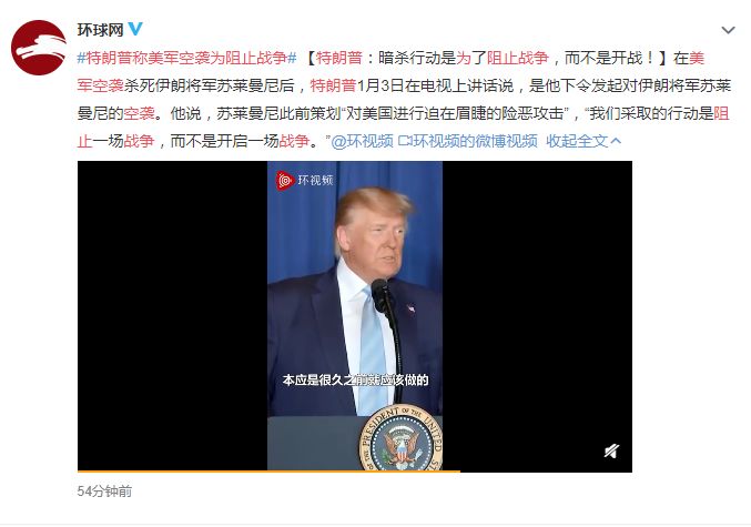也就是说,他是伊朗反美的核心人物,是美国安全潜在的威胁者。因此,特朗普称美军空袭为阻止战争。