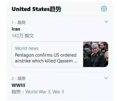 美国的网友完全不淡定了!刚躺下准备刷刷手机就就被推特热搜榜吓懵。wwiii(第三次世界大战)、五角大楼、伊朗等关键词霸屏……