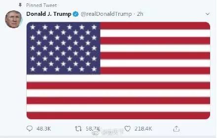 在五角大楼还没正式宣布承认空袭事件前,特朗普在推特上发了一张美国国旗。