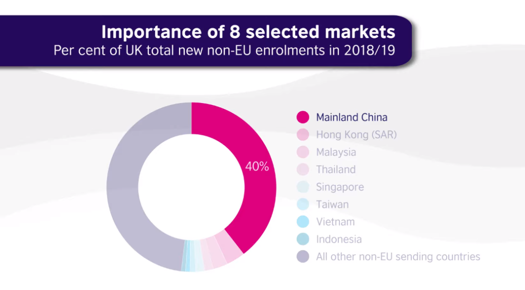 而中国学生在2018/19学年时,占英国非欧盟国际留学生中的40%。
