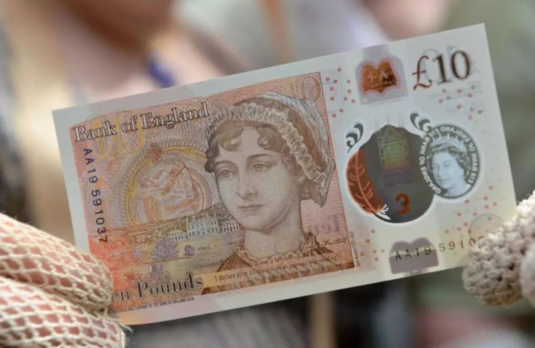 2017 年 9 月 14 日,英格兰银行发行了面值为 £10 的塑料钞票,背面为女作家简·奥斯丁。