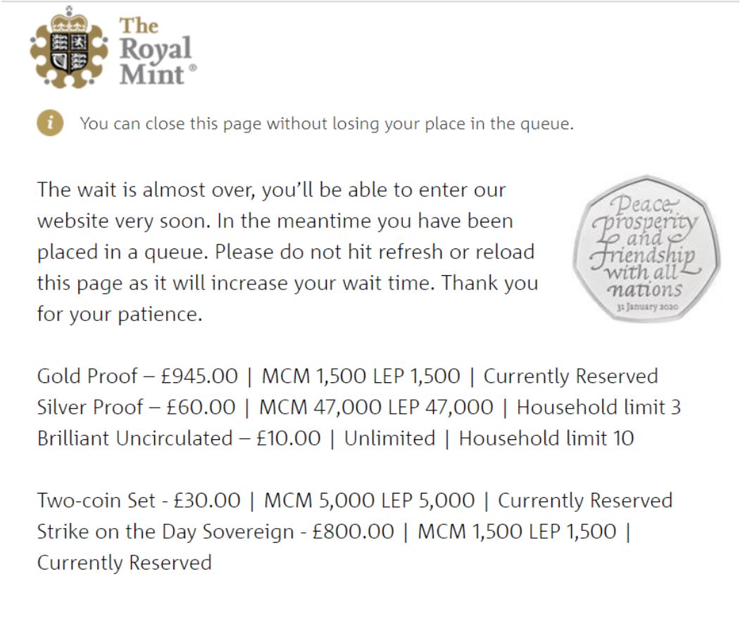 除了常规货币外, The Royal Mint 还于 1 月 31 日发行了“ 脱欧纪念币 ”