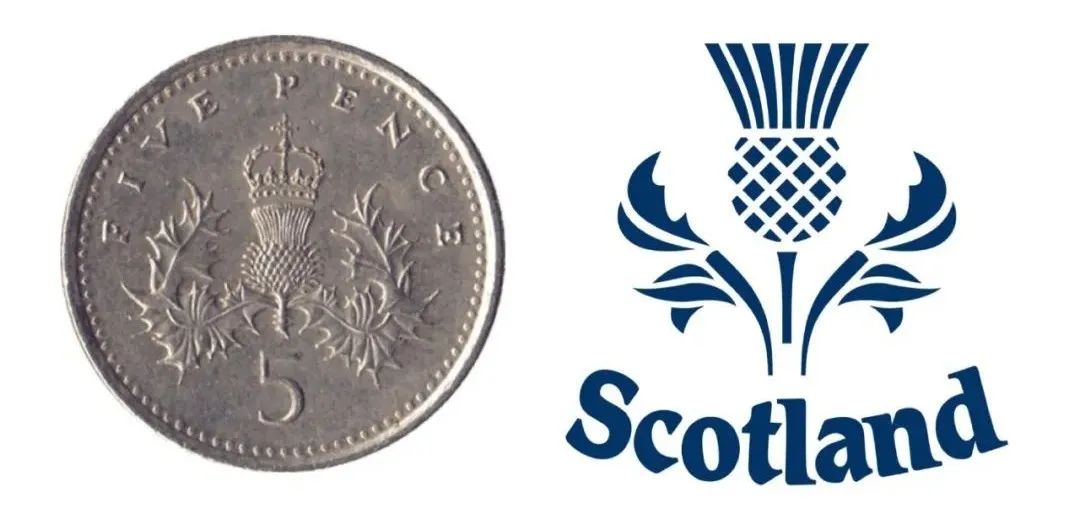 5p 上是苏格兰的标志——蓟,头顶一顶英国皇冠,萌萌哒有木有~