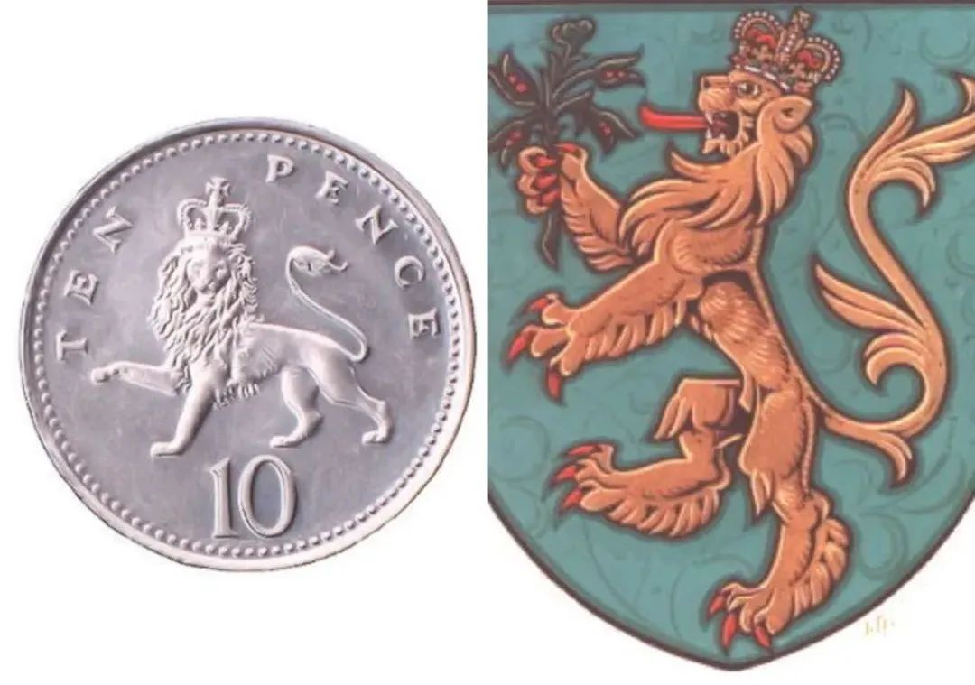 10p 的标志则是英国力量的象征——雄狮,雄狮头顶的正是英国王冠 British Monarch 。