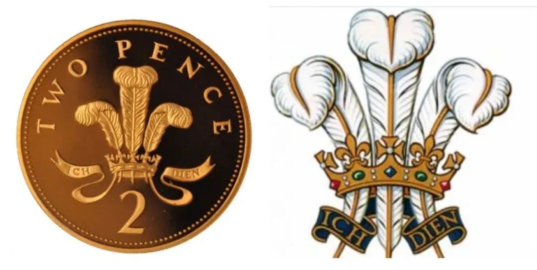 2p 上的则是抽象化的威尔士王子( Prince of Wales )的羽毛。