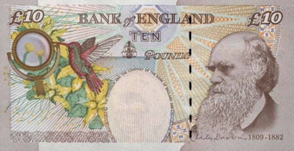 而现在正在流通的 £10 纸币于 2000 年 11 月发行,上面印有查尔斯·达尔文的头像。