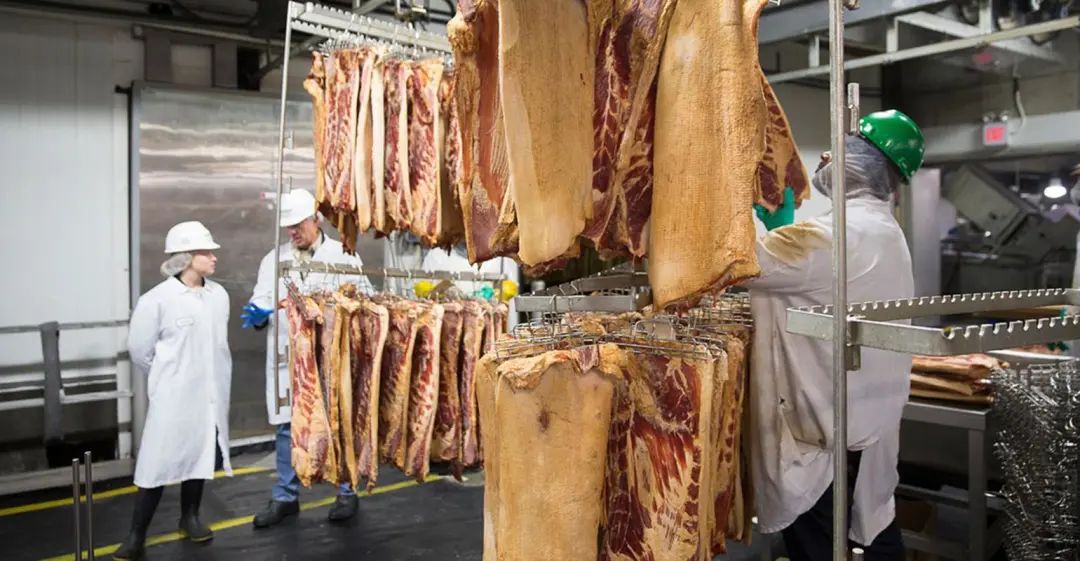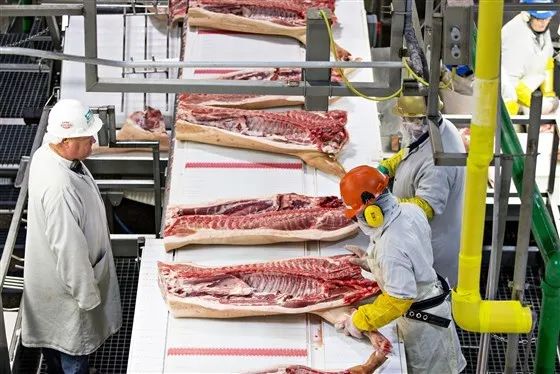 这次出事的,是美国最大的肉加工厂之一,位于南达科他州。3700多名员工,每天在八层楼高的工厂里,流水线处理19500头猪。