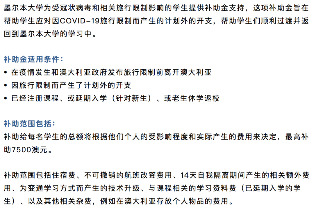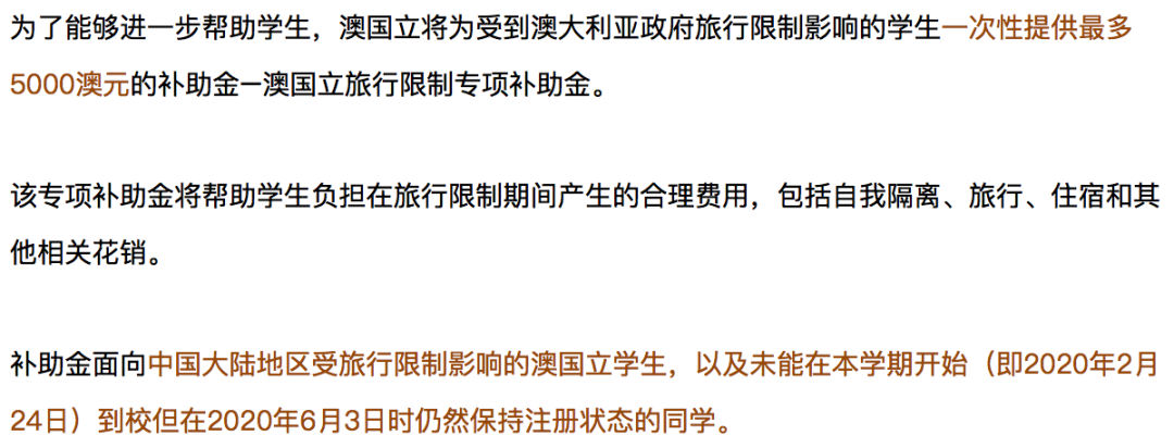 现在,澳洲所有的八大都已经转为网上授课,不论是在澳洲还是在中国,学业都可以照常进行。并且,澳洲国立大学、墨尔本大学和悉尼大学等都提出了数量不等的留学生补偿金。